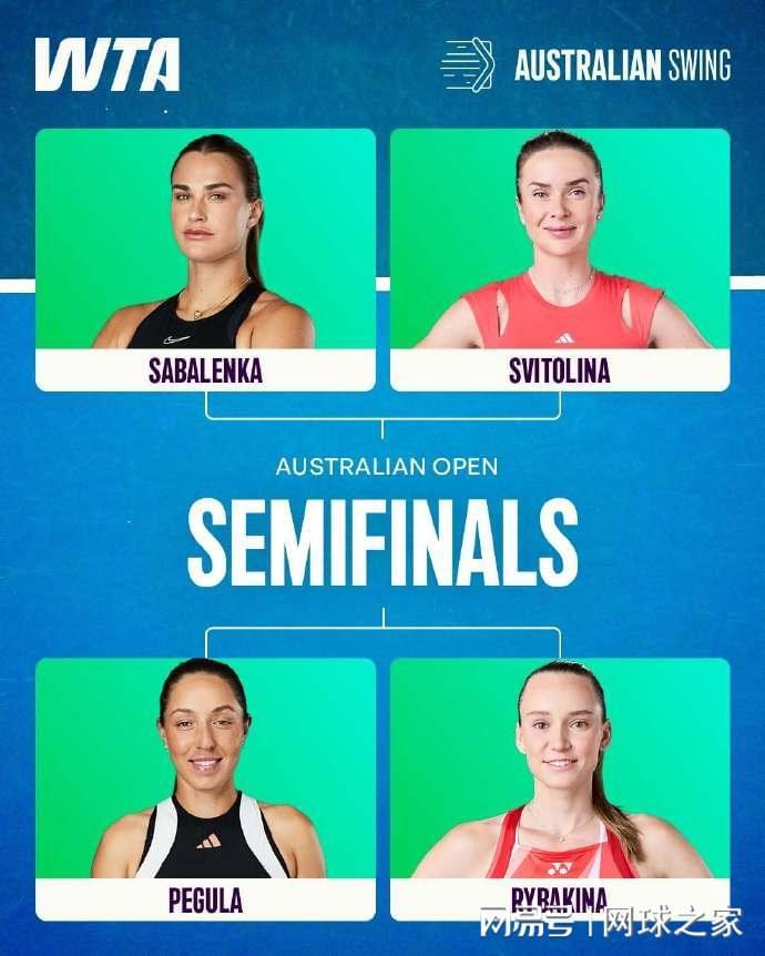 2026年澳大利亚网球公开赛男女单打的四强阵容已经全部决出,女单赛场的四位球员分别是萨巴伦卡、斯维托丽娜、佩古拉和莱巴金娜,这四位球员在晋级路上一盘不丢,这是公开赛年代以来第五次在大满贯赛场出现这种情况。