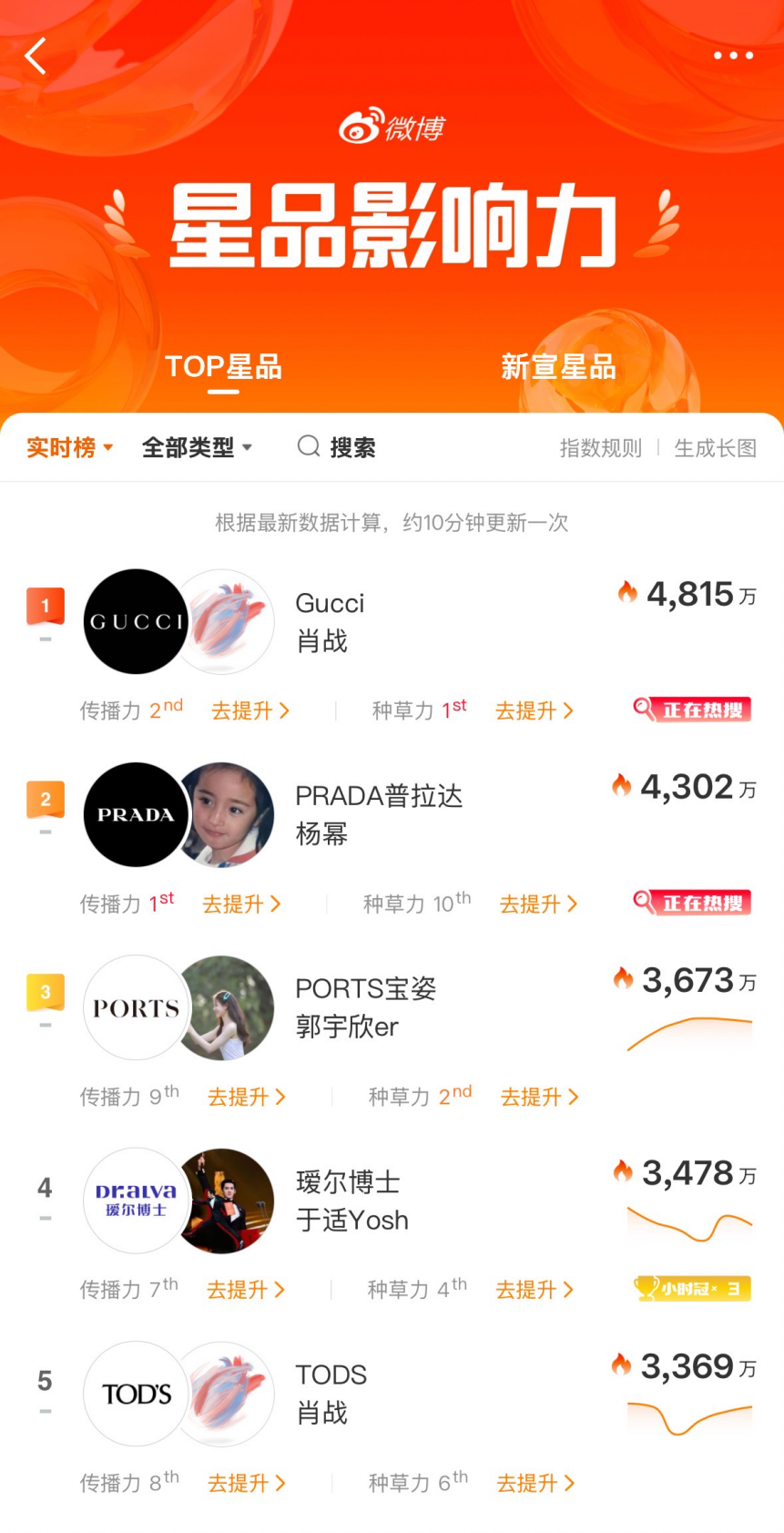 部分社交平台也推出了商业工具,可以作为品牌的决策信息之一,例如品牌可以在微博的“星品影响力”中了解具体商业合作的传播力和种草力,推断艺人的商业潜力。